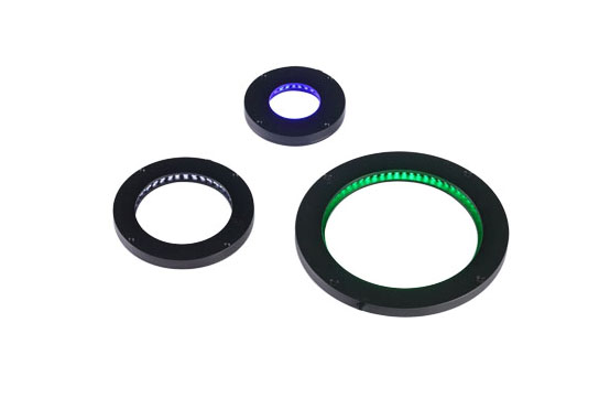 以不同照射角度、不同顏色組合直接照射在被測物體上,可避免照射陰影現象,突顯成像特征,可結合漫射板使用,使光線更為均勻、柔和。