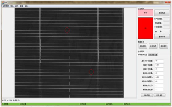 對太陽能電池片的正銀印刷缺陷在線監測,可按需調節監測參數,將不影響效率和分級的缺陷忽略;對不同缺陷等級進行不同處理方式(告警、停機處理等)。